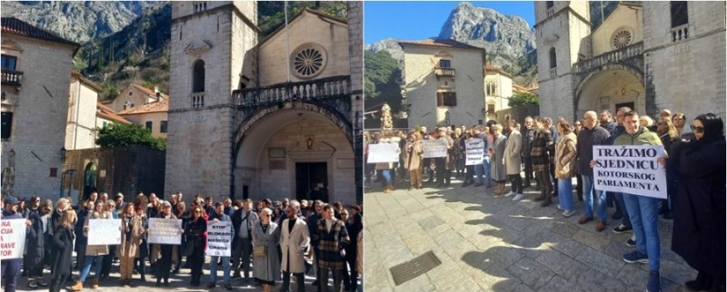 Učesnici protesta nosili su transparente sa porukama: „Stop blokadi našega grada“, „Ustavni sud blokiran = nefunkcionalan bez kadrovskog plana“, „Tražimo sjednicu kotorskog parlamenta“…